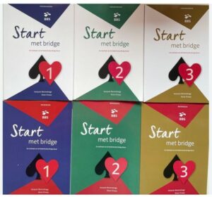 Start met bridge is naast een moderne en vernieuwende methode de officiële bridgeleermethode van de Nederlandse Bridge Bond en gaat uit van de methode ‘vijfkaart hoog’. Naast dit theorieboek is er ook een werkboek waarmee de beginnende bridger de behandelde theorie kan oefenen. Voor een introductie klik op onderstaande foto: